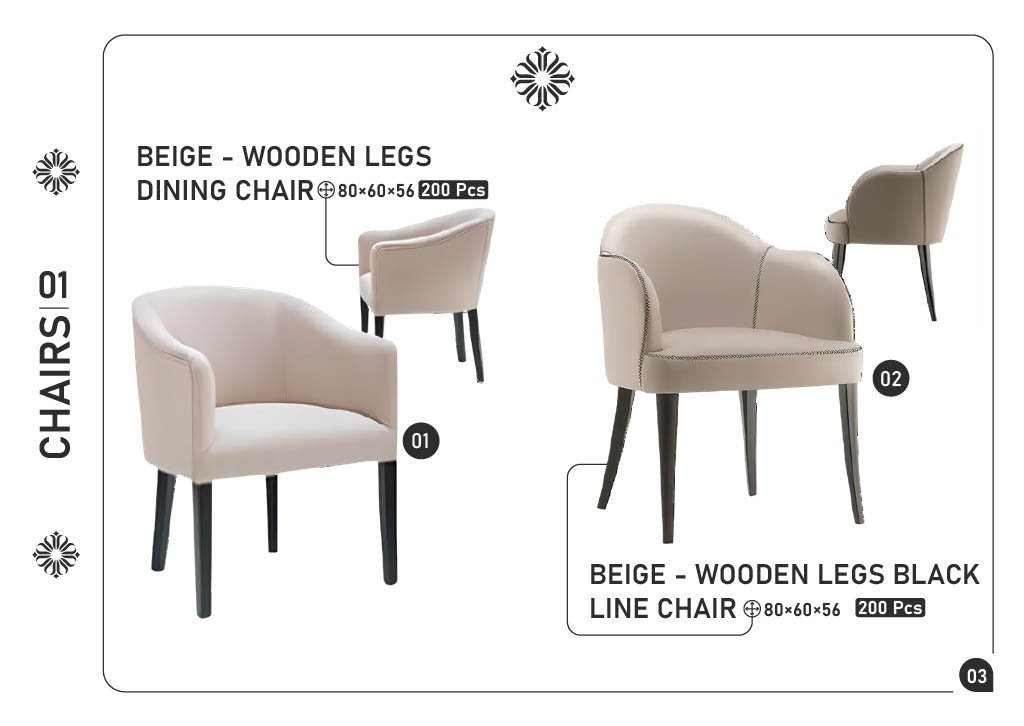 01) BEIGE WOODEN LEGS DINING CHAIR — 80×60×56 — 200 pcs