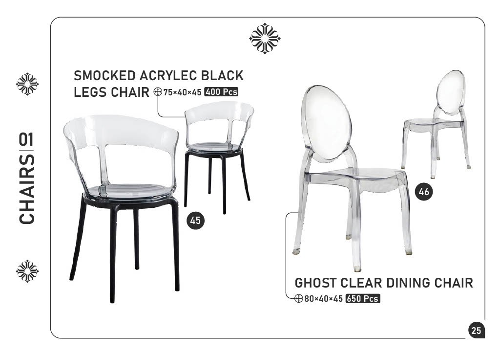 45) SMOKED ACRYLIC BLACK LEGS CHAIR β 75Γ40Γ45 β 400 pcs