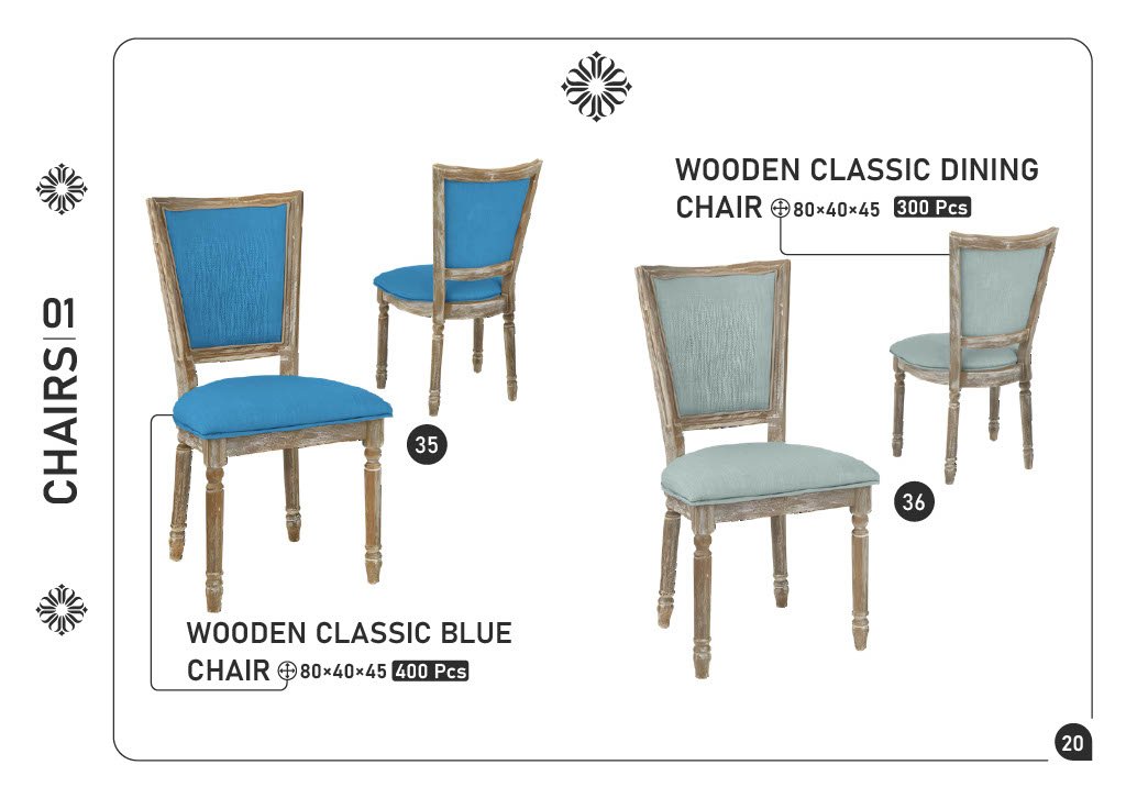 36) WOODEN CLASSIC DINING CHAIR โ 80ร40ร45 โ 300 pcs